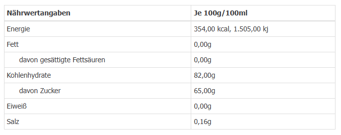 Zutaten: Zucker, Glukosesirup, Säuerungsmittel Citronensäure, Dextrose, Aromen, Maltodextrin, Säuerungsmittel Äpfelsäure, Überzugsmittel Bienenwachs, Farbstoffe (Kurkumin, Kupferhaltige Komplexe der Chlorophylle und Chlorophylline, Betanin).