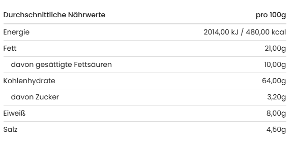 WEIZENMEHL (GLUTEN), Palmöl (Palmöl, Antioxidationsmittel: E306), Salz, Zucker, Tapiokastärke, modifizierte Tapiokastärke, Knoblauch 1,2 %, Geschmacksverstärker: E621, E635, Würzmittel (SELLERIE, SOJAMEHL, WEIZEN (GLUTEN)), Zwiebel 0,4 %, Karotte 0,3 %, Frühlingszwiebel 0,2 %, Kaffeeweißer in Pulverform (Glukosesirup, gehärtetes Palmkernöl, MILCHEIWEIß, Säureregulator: E340, Emulgator: E471), Sojasaucenpulver (SOJABOHNEN, Glukosesirup), Maltodextrin, Getrockneter Seetang 0,07 %, gemahlener Pfeffer 0,06 %, Säuerungsmittel: E296, E330, Farbstoff: E150c, Verdickungsmittel: E466, Trennmittel: E551 (Nano), Hefeextrakt.